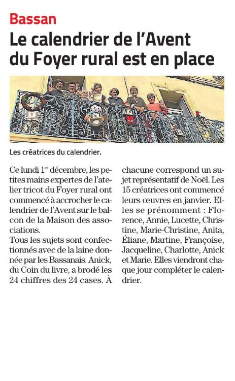 Foyer Rural de Bassan lance son calendrier de l’Avent