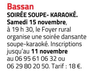 Foyer rural de Bassan – Soirée soupe- karaoké