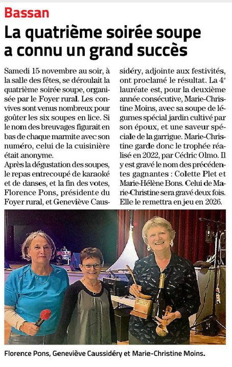 Foyer rural de Bassan – Succès de la quatrieme soirée soupe
