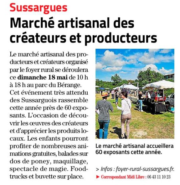 Foyer rural de Sussargues Marché artisanal des créateurs et producteurs