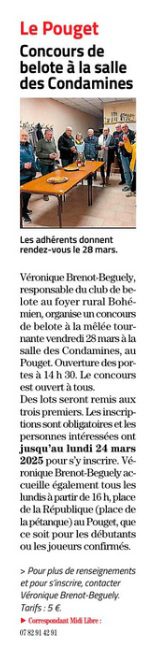 Foyer rural du Pouget – Concours de belote