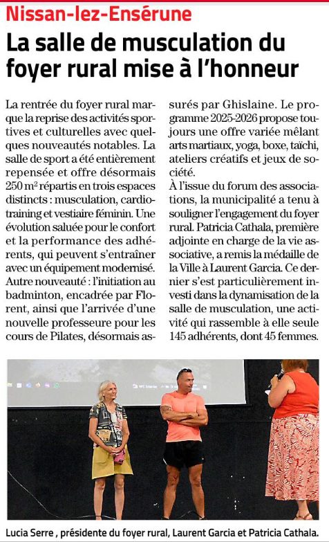 Foyer rural Nissan lez Ensérunes et sa salle de musculation à l’honneur