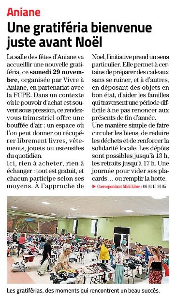 Nouvelle gratiféria de l’ Association Vivre à Aniane